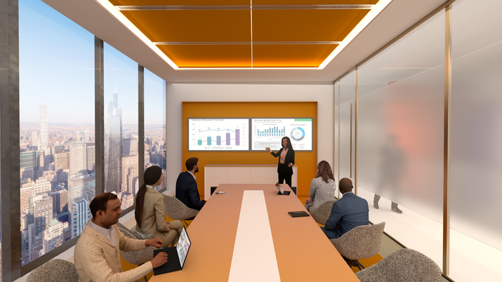 One of the hallmark features of the Seagram Building is its glowing ceiling. Special attention was given to preserving and enhancing this architectural feature to ensure that the new office design complements the existing space. The design aims to harmonize with the architectural aesthetics and historical value of the Seagram Building while introducing modern design elements, resulting in a workspace that respects tradition while embracing innovation.